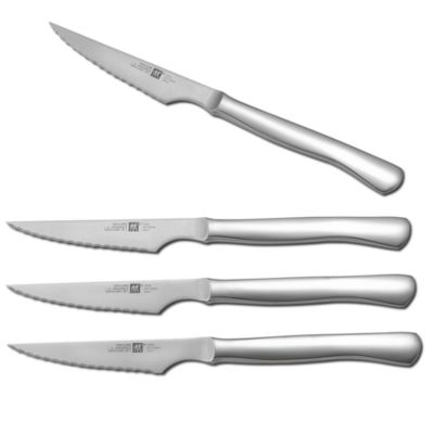 Slice your way through steak, fish, and chicken as easy as butter with these highcarbon stainless steel forged steak knives. From ZWILLING J.A. HENCKELS..J.A. Henckels International stainless steel steak knife has its own set of .4pc Set Includes: Steak Knives Features: 4" blade length Blade width: 5/8" Blade thickness: 1/16" 83/4" overall Heavy gauge 18/10 stainless steel construction..Buy the Zwilling j.a henckels pro steak stainless steel steak knife set, 4 pieces online from Houzz today, or shop for other Steak Knives for sale. Get user reviews .Bob Kramer Stainless Damascus Steak Knives by Zwilling J.A. Henckels, Set of 4 each side with 50 alternating layers of nickel and Damascus stainless steel, .Buy ZWILLING J.A. Henckels Porterhouse 8pc Stainless Steel Steak Knife Set With Wood Presentation Box with fast shipping and toprated .Don't miss this deal on zwilling j.a. henckels zwilling accessories steak knife set, 2.3, stainless steel from HENCKELS..Amazon has ZWILLING J.A. Henckels Stainless Steel Steak Knife Set for only $39.96 shipped (regularly $160) that's a 70% savings!.We surveyed six leading ja henckels steak knives buys over the last 2 years. Uncover which J.A. Henckels International Stainless 4" Steak Knives Set o. 4. (0) .Description. 4piece set of serrated steak knives; High carbon stainless steel knives with Sigmaforge onepiece, forged construction for improved balance,